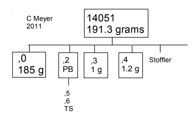 There are only two thin sections for 14051 and the sample has not been sawn.