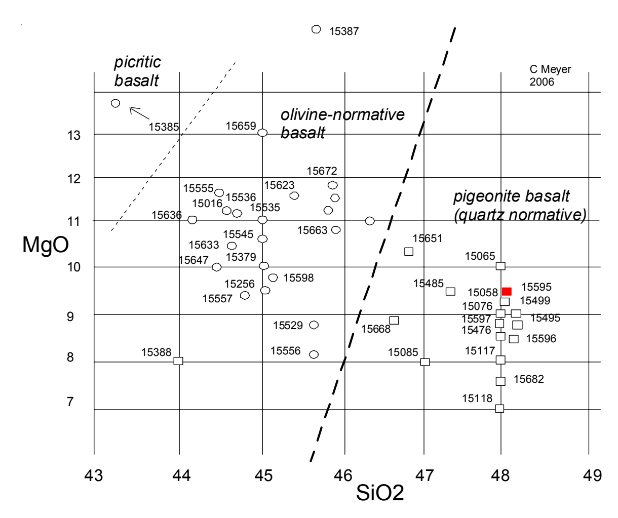 Figure 7: Chemical composition of 15058 compared with that of other lunar basalts.