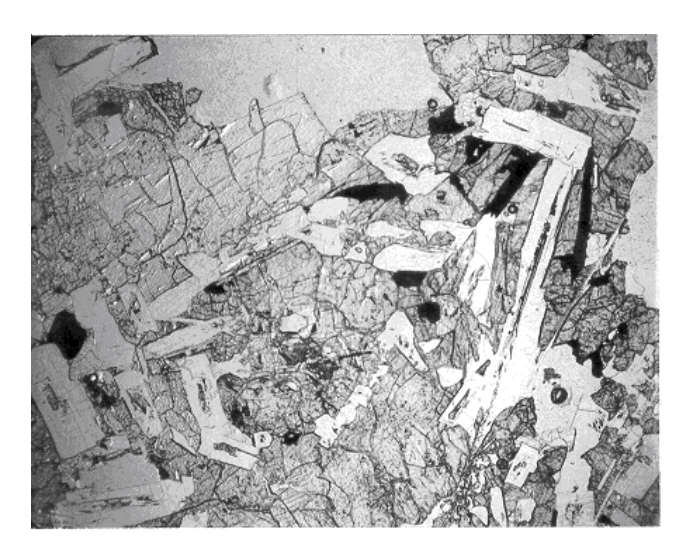 Plagioclase: Hollow plagioclase laths can be seen in thin section (figure 2). Gay et al. (1972), Juan et al.