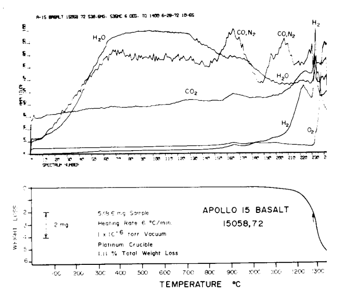 Figure 12: Gas evolved from 15058 on heating (by Gibson and Moore 1972).