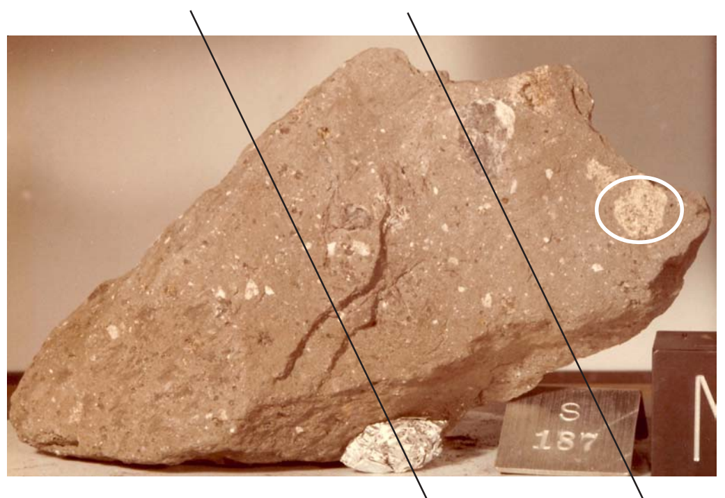 Section titled “Basalt Clast”Mark et al. (1974) determined the age of a mare basalt clast.