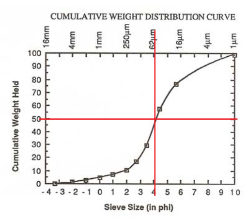 Figure 11: Grain size distribution for 15265 after freeze-thaw-cycle dissagregation (Graf 1987).