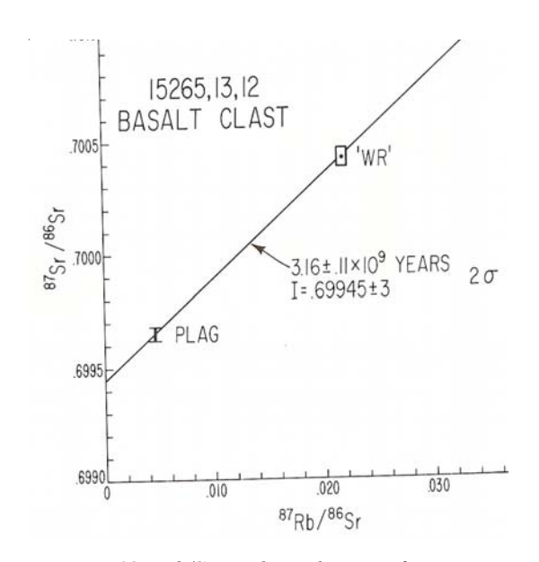 Figure 12: Rb/Sr isochron diagram for mare basalt clast from 15265 (Mark et al. 1974).