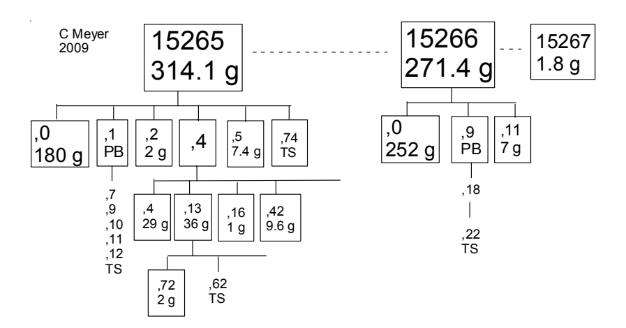 Section titled “Processing”15265 was originally issued to the Burlingame Consortium. There are 6 thin section of 15265 and 5 for 15266. These samples have not been sawn.