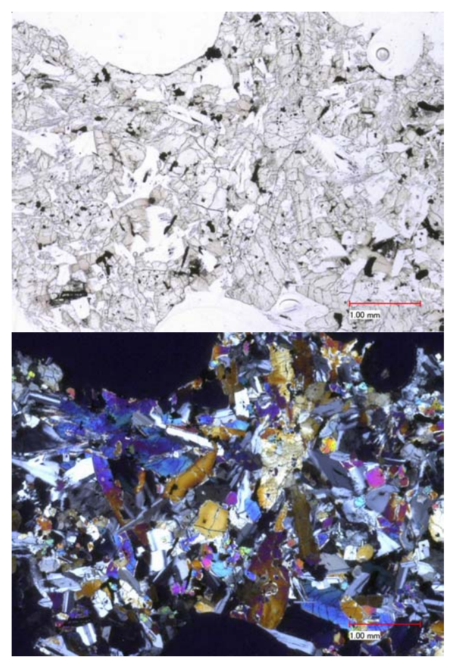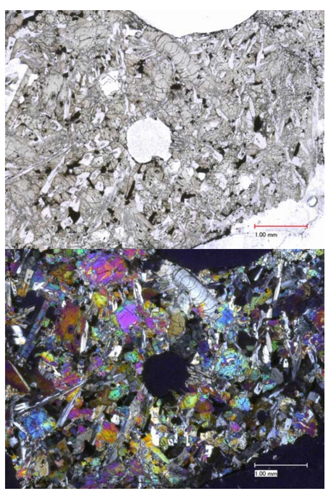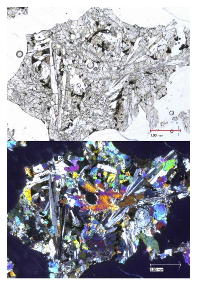 Figure 3b: Photomicrographs of thin section 15616,11 by C Meyer @ 50x.