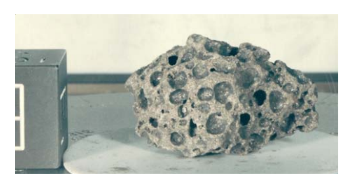 Figure 5a: Photo of 15622 with portion of 1 inch cube for scale. S71-49107.