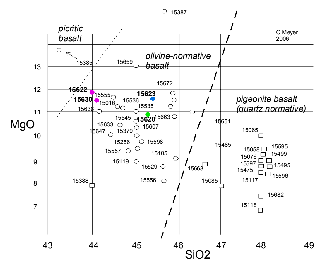 Figure 12: The Apollo 15 basalts can be divided into two groups based on silica content.