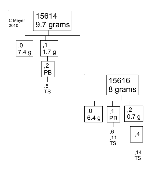 Section titled “References for 15614, 15616 15620, 15622, 15623 and 15630.”Butler P. (1971) Lunar Sample Catalog, Apollo 15. Curators’ Office, MSC 03209