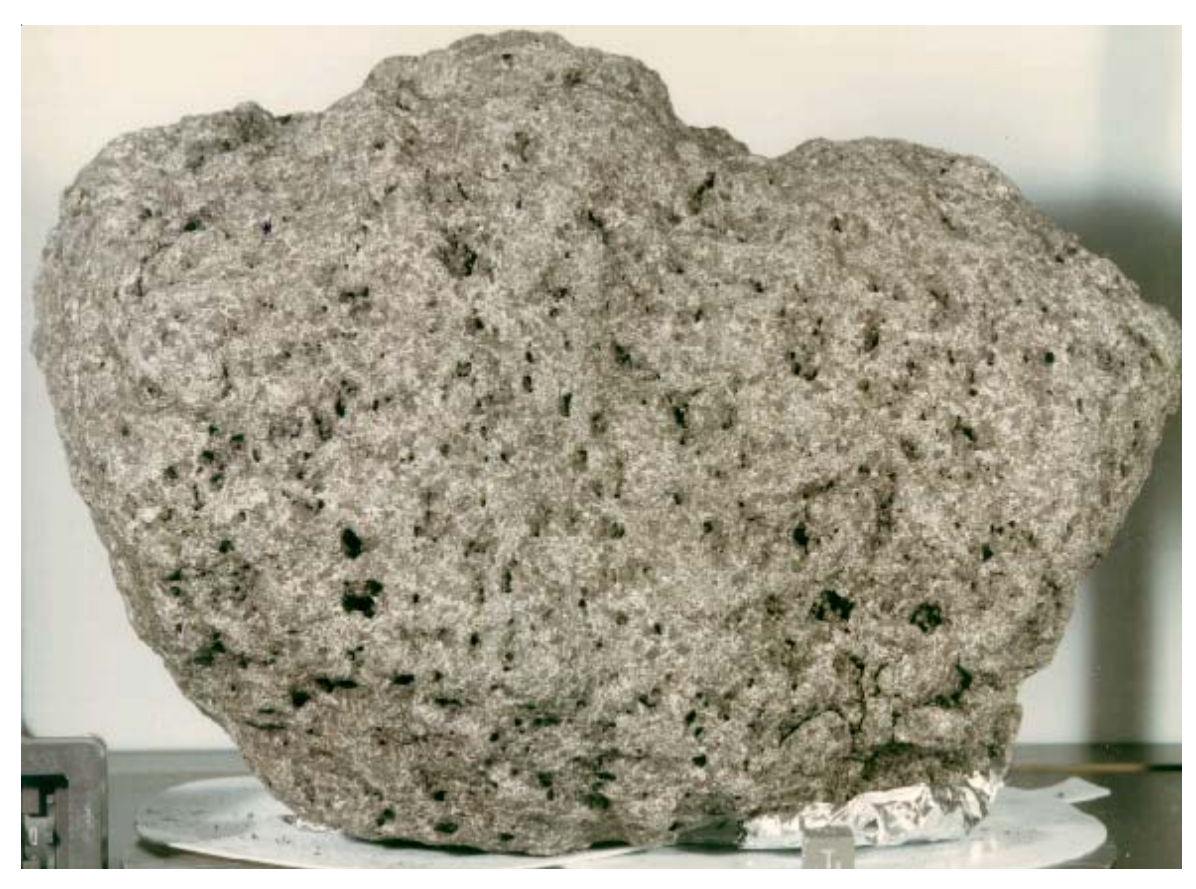 Figure 12: A piece of 70035 in its dry nitrogen display case. NASA S84-34617.