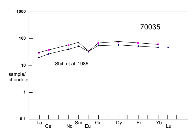 Figure 5: Normalized rare-earth-element diagram for 70035 (data from Shih et al. 1975).