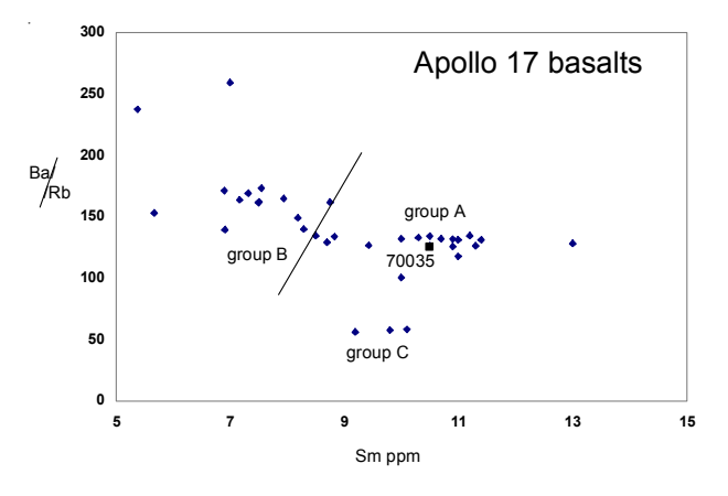 Figure 6: Trace element content of Apollo 17 basalts showing 70035 is type A.