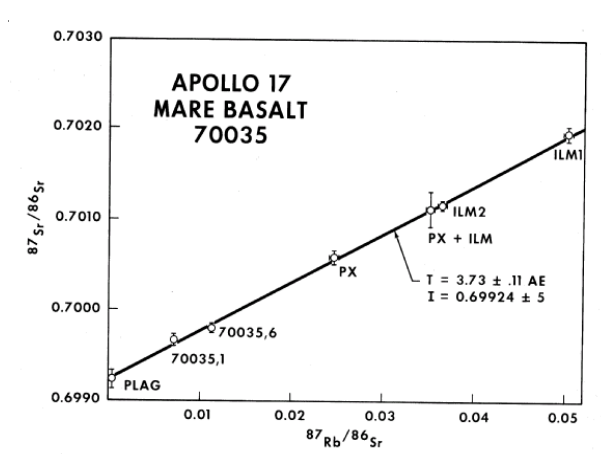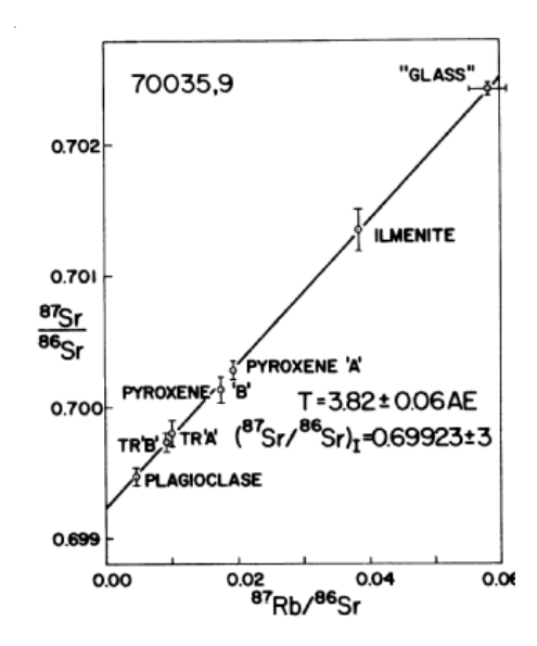 Figure 7: Rb-Sr isochron for 70035 (from Nyquist et al. 1974).