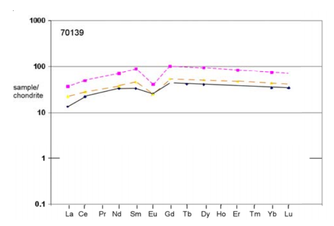 Figure 4: Normalized rare-earth-element diagram for70139 compared with type A and type B basalts from Apollo 17 (dat by Neal et al. 1990).