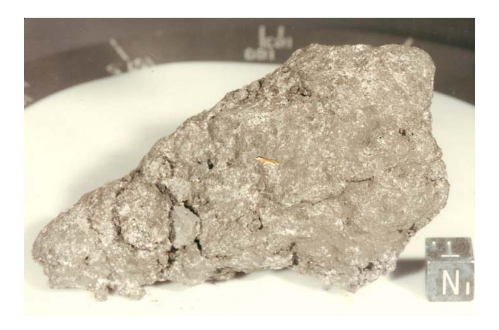Figure 3: Photo of top surface of 71175. Cube is 1 cm. S73-15728.