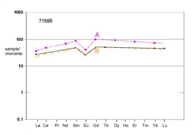 Figure 5: Normalized rare-earth-element diagram for 71595 and type A and B basalts.