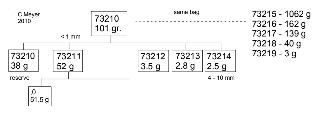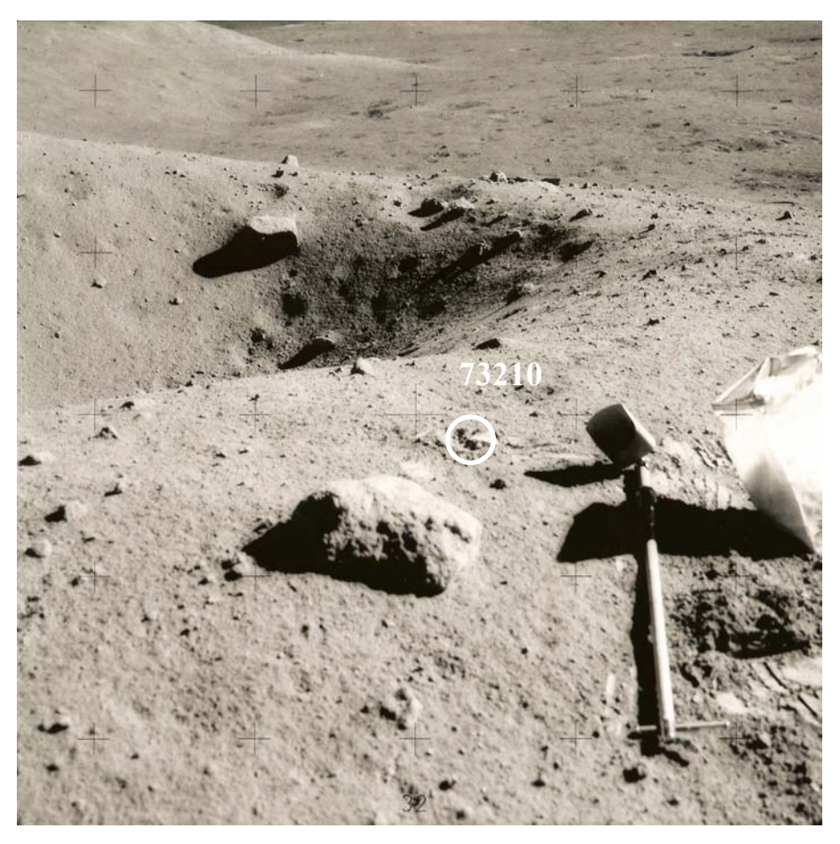 Section titled “Introduction”73210 is the soil collected along with 73125 – 73128, and returned in same bag. This soil sample is thus partly dust attached to the rocks and material abraded off of them during transit.