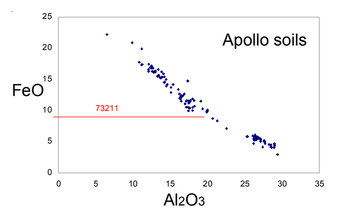 Figure 4: FeO content of 73211 compared with composition of Apollo soil samples.