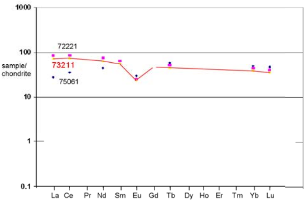 Figure 5: Normalized rare-earth-element diagram for 73211 compared with mare and highland soil samples from Apollo 17.