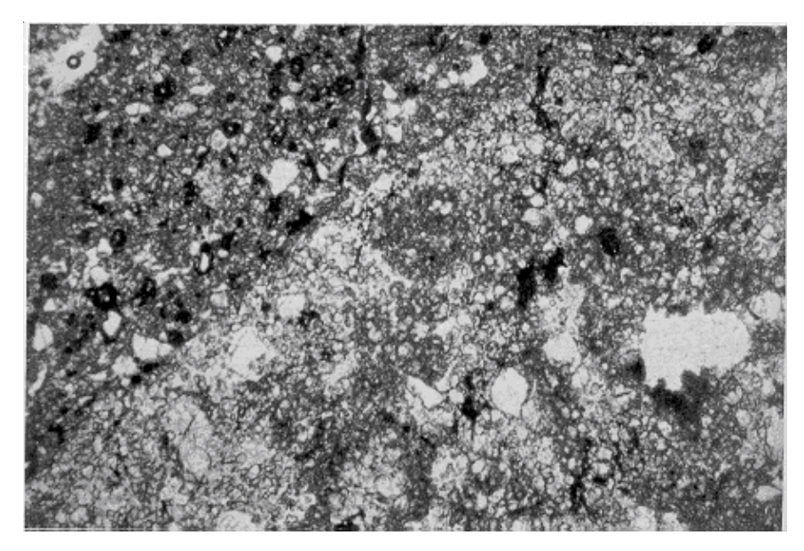 Figure 3: Photomicrograph of thin section of 76055. Field of view is 3 mm. NASA S73-19868.