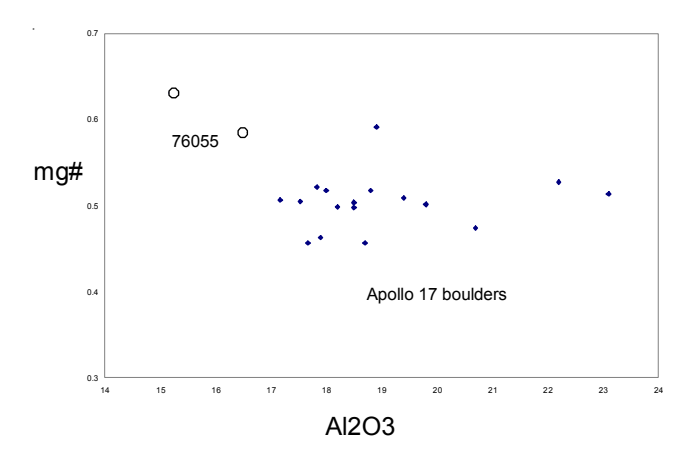 Figure 6: Composition of Apollo 17 impact melt breccias from stations 2, 3, 6 and 7 (data from Meyer 1994 and Ryder 1993).