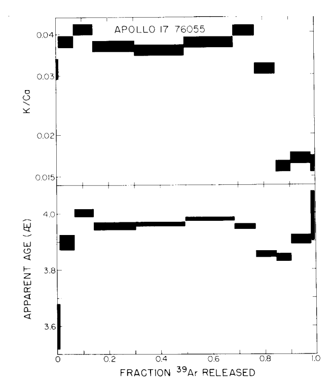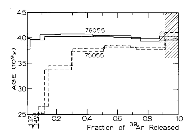 Figure 8: Argon plateau age of 76055 (from Huneke et al. 1973).