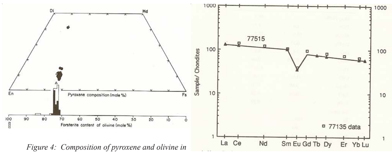 Figure 5: Normalized rare-earth-element diagram for 77515 compared with nearby breccia 77135.