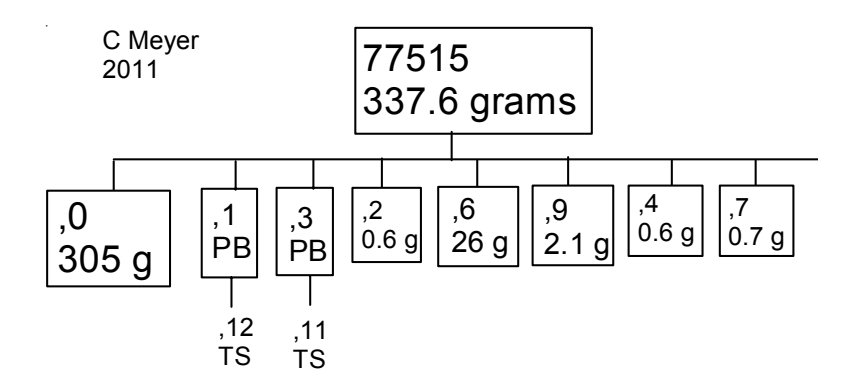 Section titled “Chemistry”Laul and Schmitt (1975) reported the chemical composition, finding that it was the same as for 77135 (figure 5).