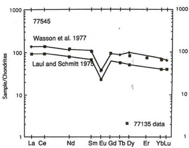 Section titled “Chemistry”The analysis by Wasson et al. (1977) is similar to that for 77135 (figure 5).
