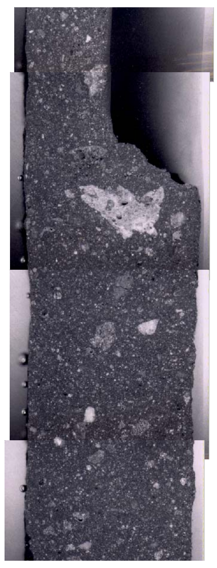 Three sets of thin sections were prepared from epoxyimpregnated residue (figure 8). A detailed petrological
