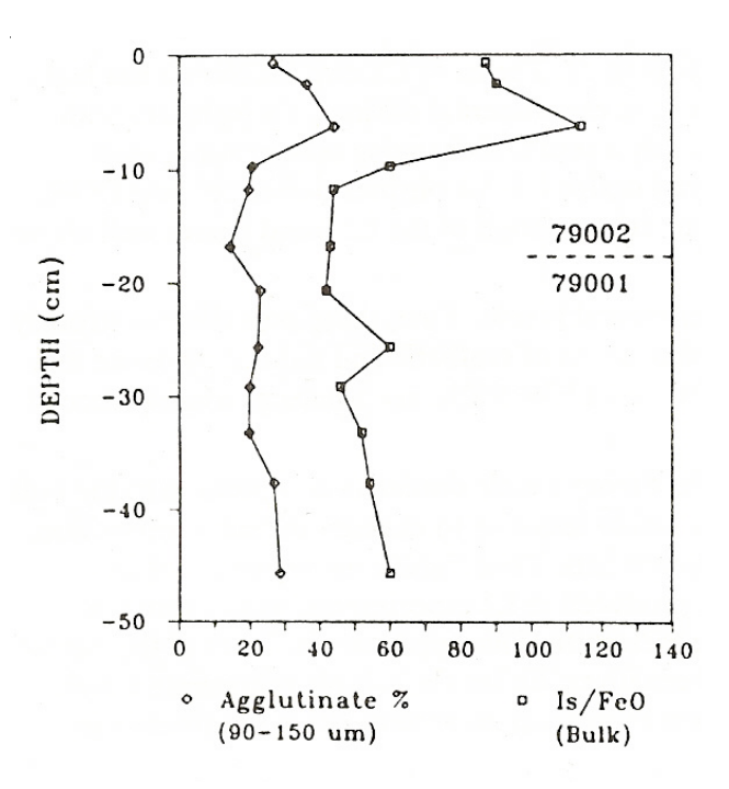 ~25 for the rest of the core. McKay et al. (1988) found higher agglutinate content (44 %) in that zone as well (figure 5).