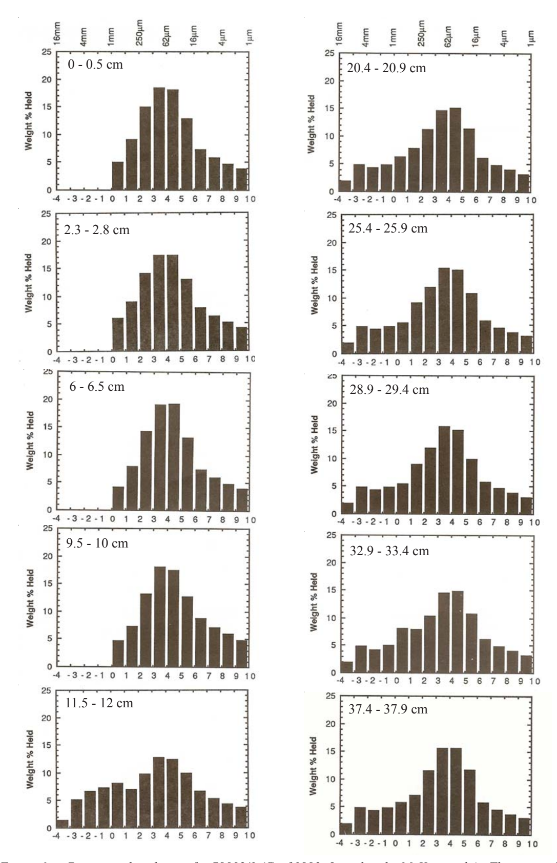 Graf (1993) plotted the grain size distribution for data obtained by McKay et al. (figure 6).
