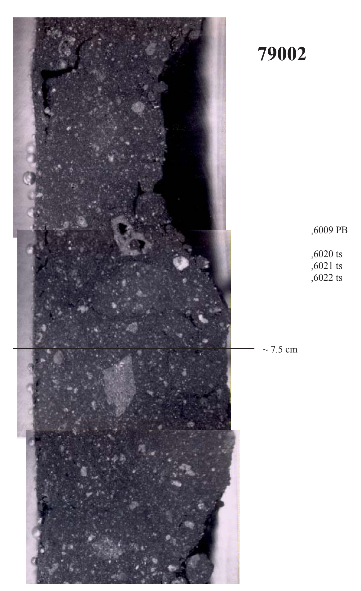 Section titled “References for 79001-2 core”Butler P. (1973) Lunar Sample Information Catalog Apollo 17. Lunar Receiving Laboratory. MSC 03211 Curator’s Catalog. pp. 447.