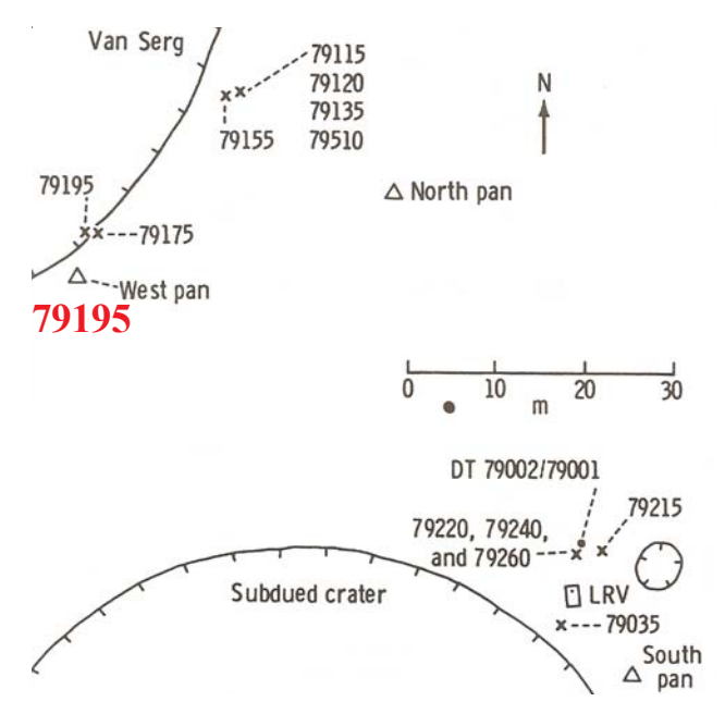 Figure 2: Locaton of 79195 on rim of Van Serg Crater.